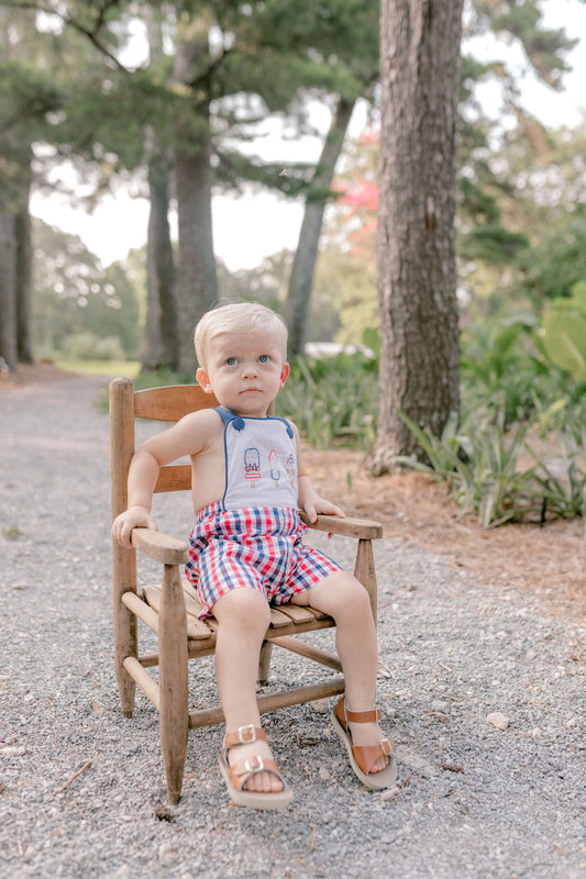 Maroon Gingham Spirit Trio Smock Boys Diaper Set