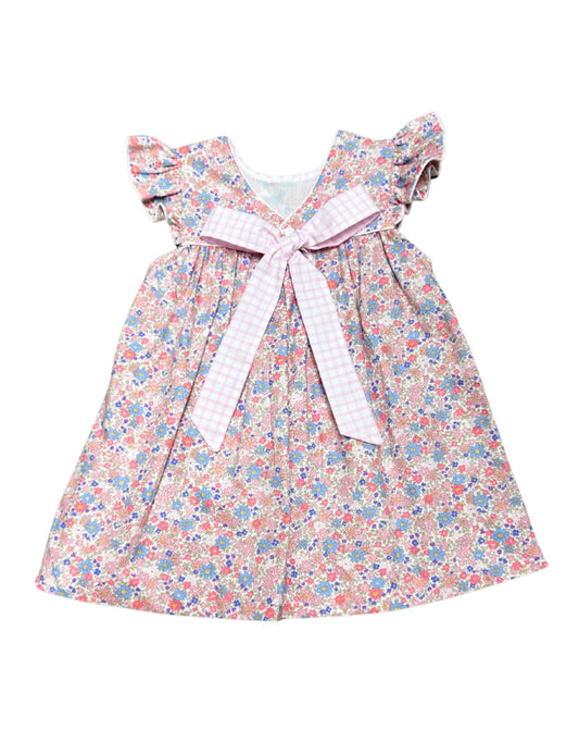 Floral Stripe and Bows Long Sleeve Bishop Smock Dress